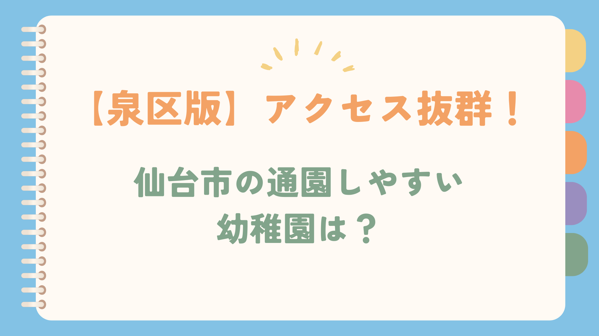 仙台市泉区にお住まいの30代、40代のパパママの皆さん、幼稚園選びって本当に悩みますよね。お子さんの成長にとって大切な場所だからこそ、教育内容はもちろん重要ですが、毎日の送り迎えの負担を考えると、「通いやすさ」は非常に大きなポイントになるはずです。特に泉区は、地下鉄南北線や主要幹線道路が整備され、ベッドタウンとして人気のエリア。だからこそ、アクセスが良い幼稚園を見つけたいと思うのは当然です。