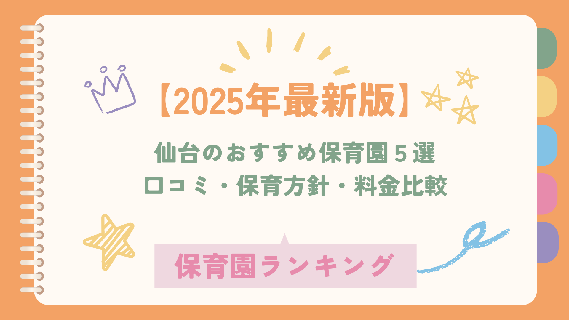 この記事では、2025年最新情報をもとに、仙台市内で特に評判が良く、おすすめできる保育園を5つ厳選してご紹介します。各保育園の「どんな特徴があるの?」「どんな教育をしてくれるの?」「実際に行った人の口コミは?」といった、皆さんが知りたい情報を徹底的に比較しました。