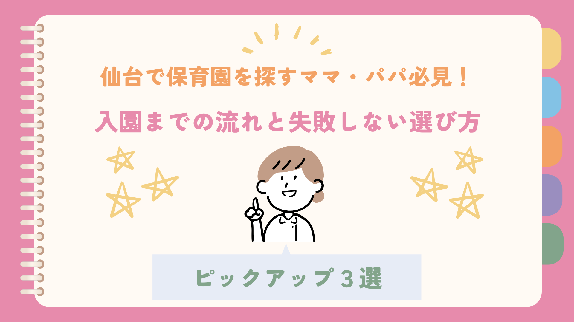 「仙台で保育園を探しているけど、どうやって選べばいいの?」 「入園までの流れが複雑そうで、何から手をつけたらいいか分からない…」