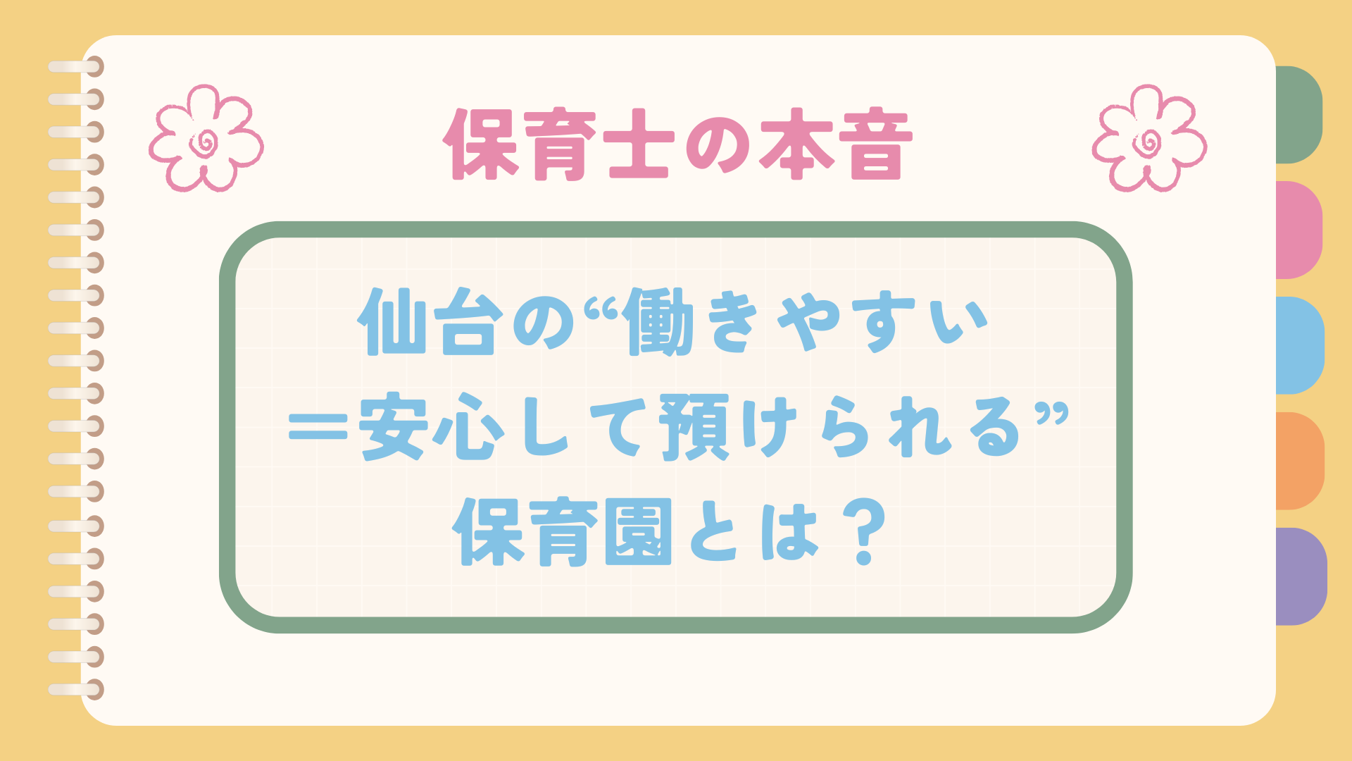 「仙台で評判の良い保育園ってどこ??」 「先生が辞めない保育園って、どうやって見つけたらいいんだろう…」